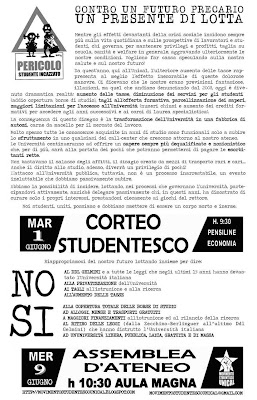 Da quest'anno, qui all'UniCal l'ulteriore aumento delle tasse rappresente al meglio l'effetto inesorabile di queste dolorose manovre. Ci dicevano che le nostre erano previsioni fantasiose, illazioni, ma quel che andiamo denunciando dal 2008, oggi è divenuto drammatica realtà: aumento delle tasse, diminuizione di servizi per gli studenti (addio copertura borse di studio), tagli all'offerta formativa, parcellizazione dei saperi, maggiori limitazioni per l'accesso all'Università (numeri chiusi e aumento dei crediti formativi da conseguire per l'accesso agli anni successivi e ai corsi di laurea specialistica).